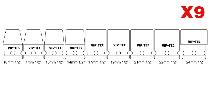 VIP-TEC 1/2 ″ Air bite wrench set 9 pieces